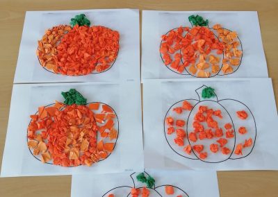 U današnjoj igraonici ponovili smo o jeseni. Izradili smo bundevu od krep papira i kolaž papira. Zabavili smo se uz igru i naše slikovnice.