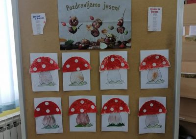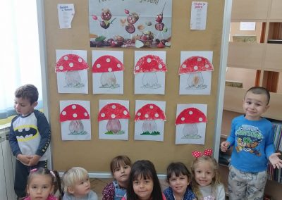 Nastavljamo s našim veselim igraonicama. Danas smo izradili gljivu i sa završenim radovima ukrasili naš pano. Nastavili smo igru, druženje i razgibavanje.