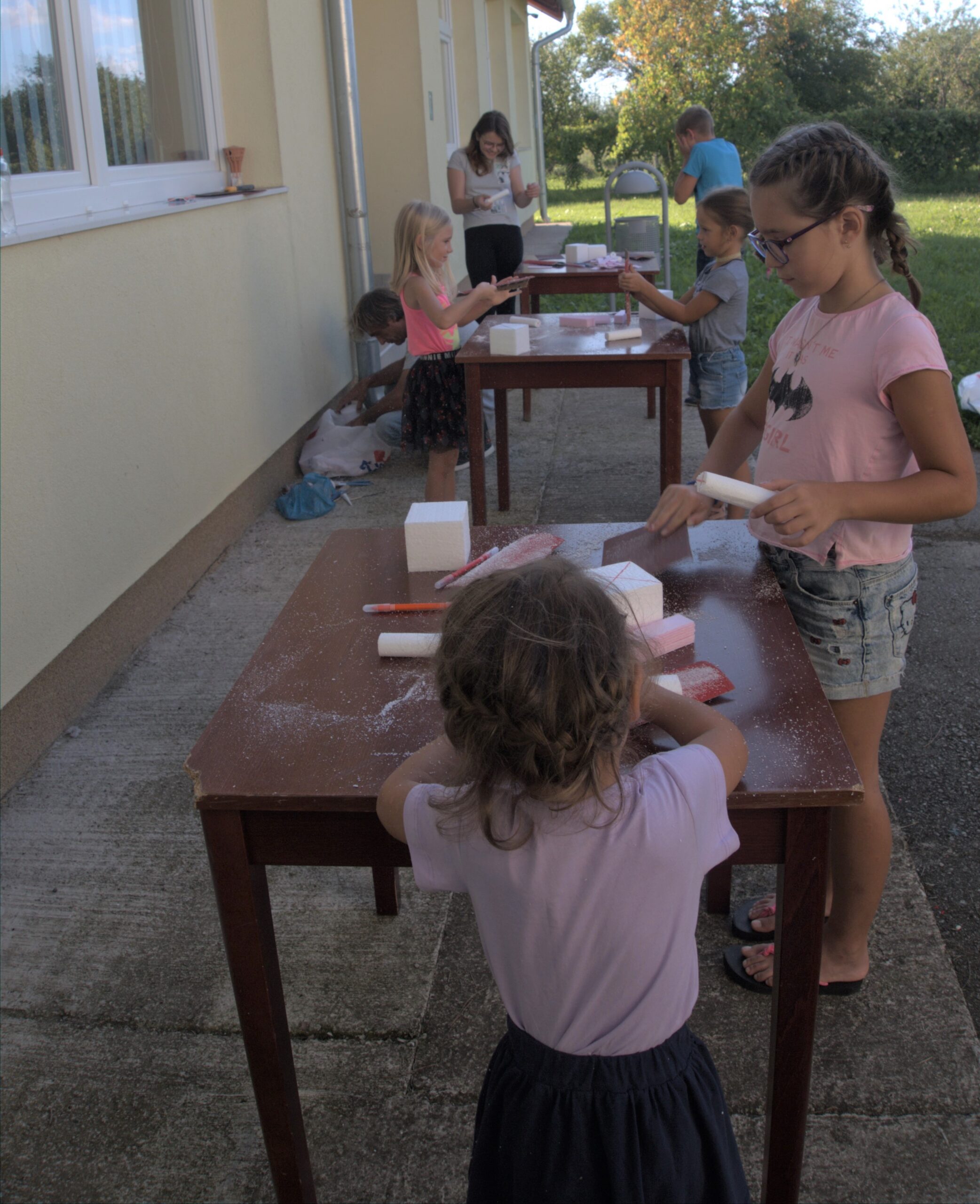 Uvijek omiljena, stiropor radionica je održana u četvrtak, 20. kolovoza. Voditelj radionice Antun Abramović je pokazao, usmjeravao i pomagao pri izradi, ovaj put, vukovarskog Vodotornja. Vješte dječje ruke su rezale, oblikovale i brusile komade stiropora koji su postepeno dobivali oblik vodotornja.