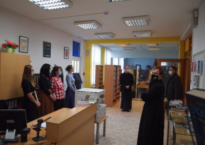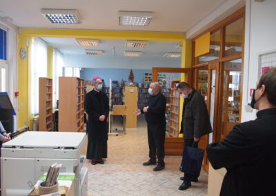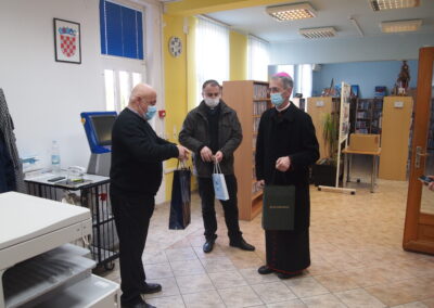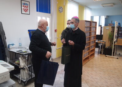 Ravnatelj Pavlović upoznao je biskupa i goste s radom knjižnice – njezinom poviješću, sastavnicama, fondom, projektima, nakladničkom djelatnošću, nakon čega su s iznimnim zanimanjem pošli u obilazak knjižnice.