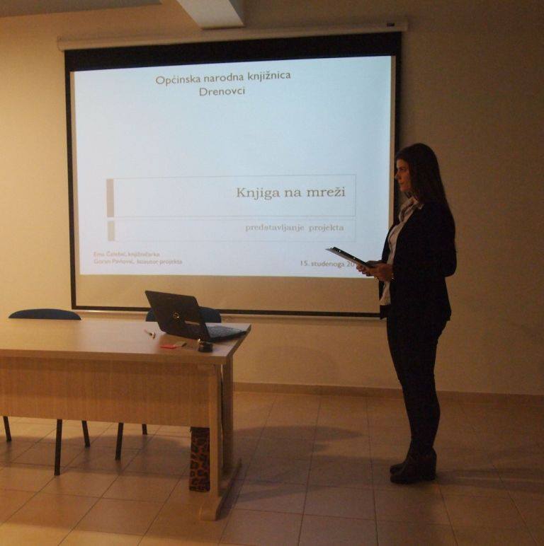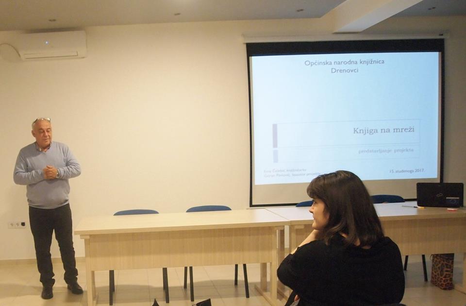 Posljednjega dana Mjeseca hrvatske knjige u našoj Knjižnici održano je predstavljanje projekta „Knjige na mreži“ kojega Općinska narodna knjižnica Drenovci nudi hrvatskoj knjižničarskoj zajednici. Cilj ovoga projekta je da se svakoj knjizi, koja iz određenoga razloga nije uvrštena u fond jedne knjižnice, pruži još jedna prilika da dospije do one zajednice, knjižnice i onoga čitatelja koji ju doista trebaju.