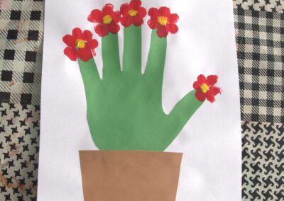 3. korak : Djeca neka svojim prstićima oslikaju latice cvijeća kao što je prikazano na slici.