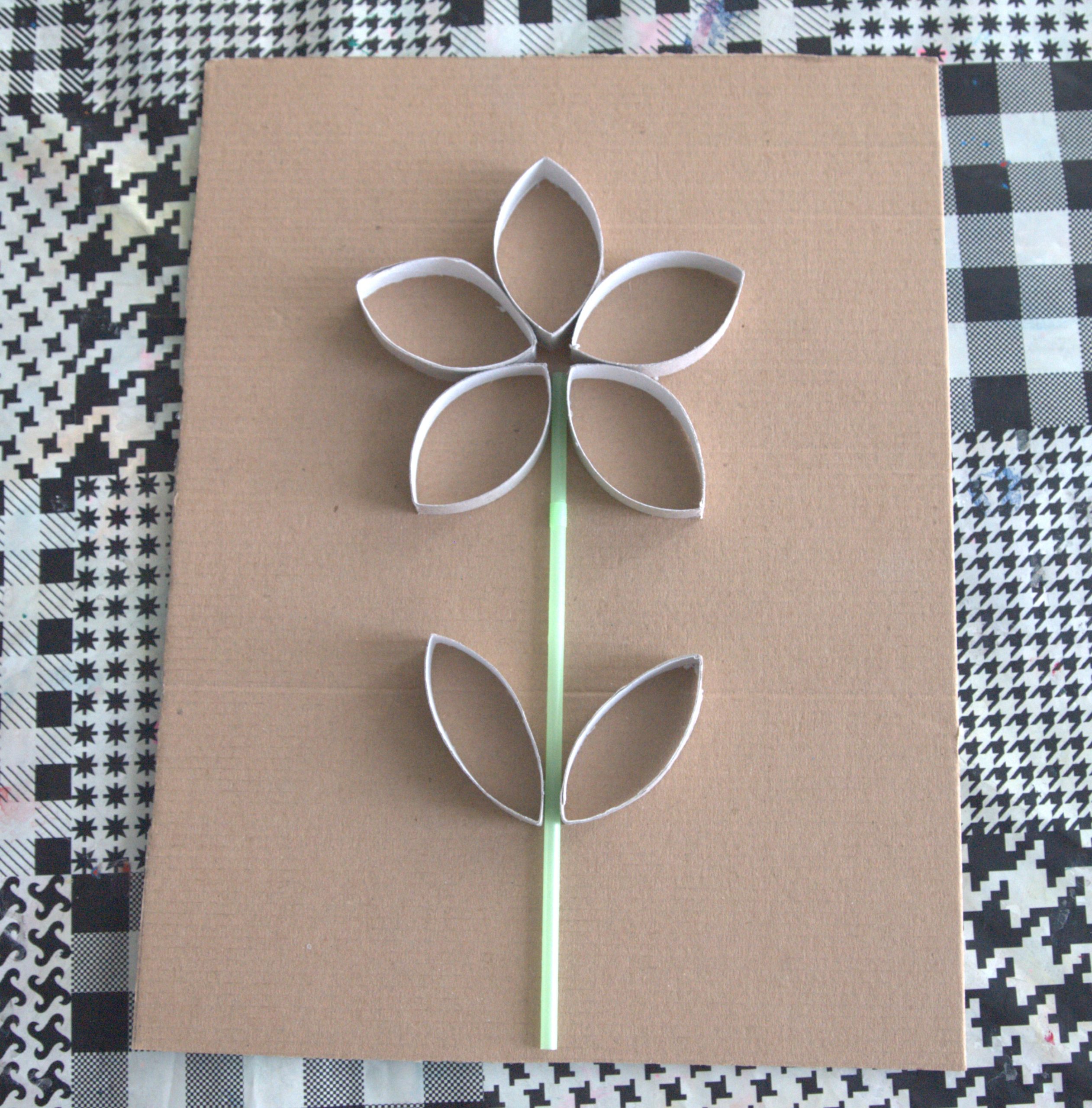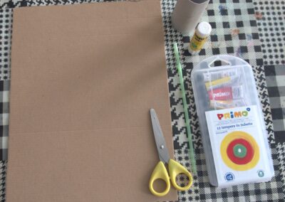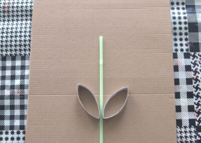 2. korak : na tvrđem kartonu zalijepimo slamku i dvije trake od rolice toaletnog papira kako je prikazano na slici.