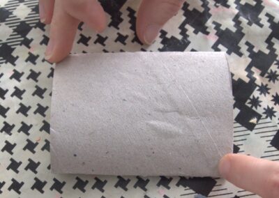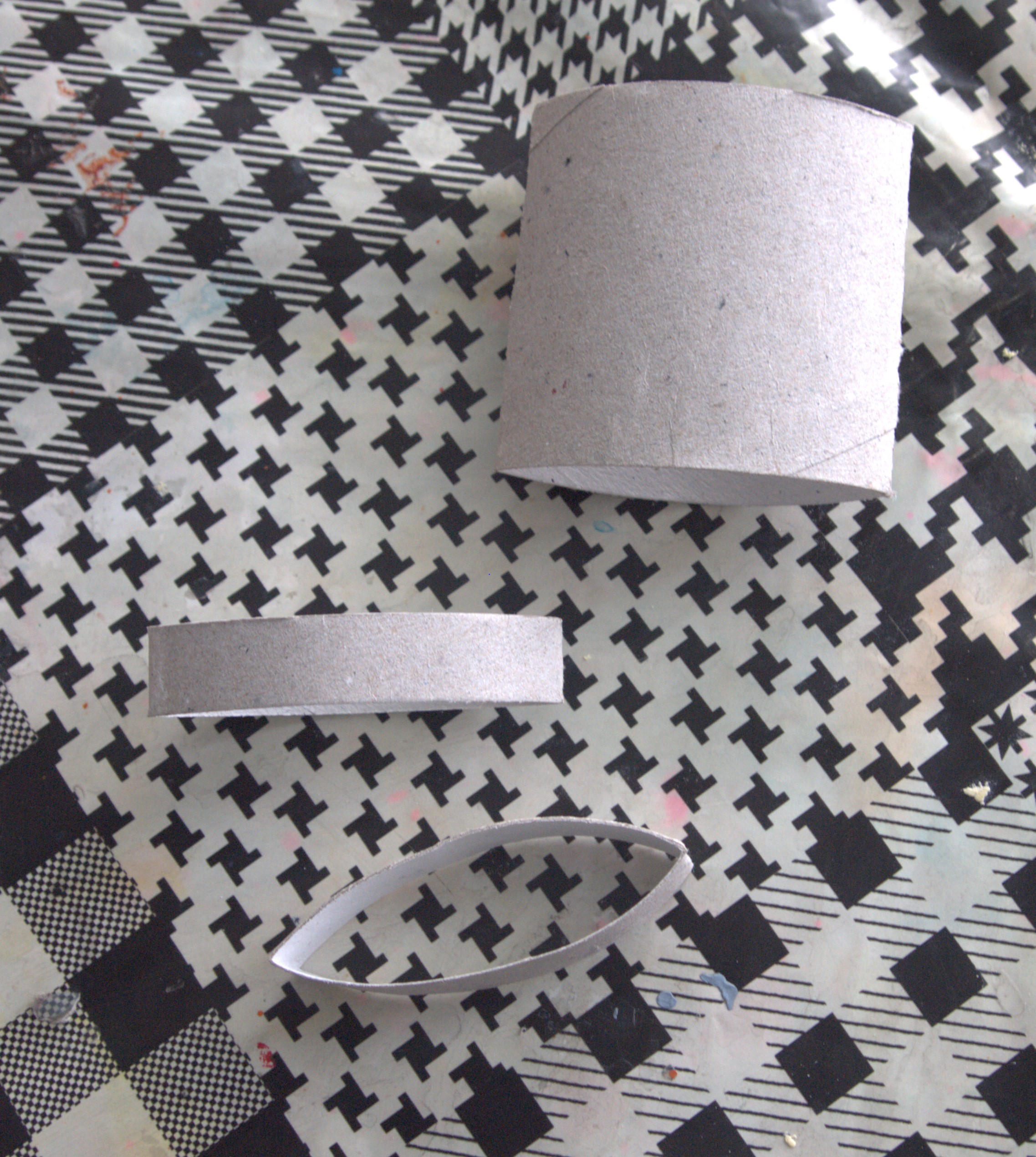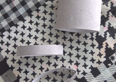 1. korak : rolice od toaletnog papira spljoštimo te režemo na trake oko 1 cm.